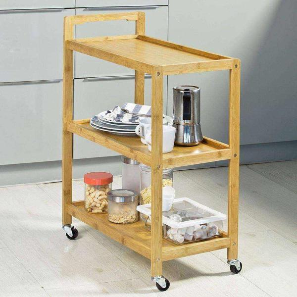 Name : Bamboo 3 Tier Storage Rack With Wheels Bamboo Kitchen Shelf